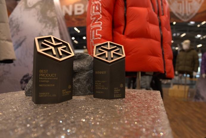 如果说时尚品牌是以光影编织冬日的绮梦,那么TANBOER坦博尔则选择走向广阔的户外,以科技重新定义冬日的防护边界。在刚刚结束的德国慕尼黑国际体育用品博览会(ISPO Munich)上,坦博尔凭借“超轻量极地再生羽绒服”斩获“2025年ISPO全球设计大奖”,其“密护绒隐格”面料亦摘得面料趋势类奖项。品牌并未止步于保暖层面的堆叠,而是将可持续理念注入核心工艺:通过可追溯的再生尼龙材质与创新保暖结构,在极寒环境下实现了轻量化与高防护的统一。